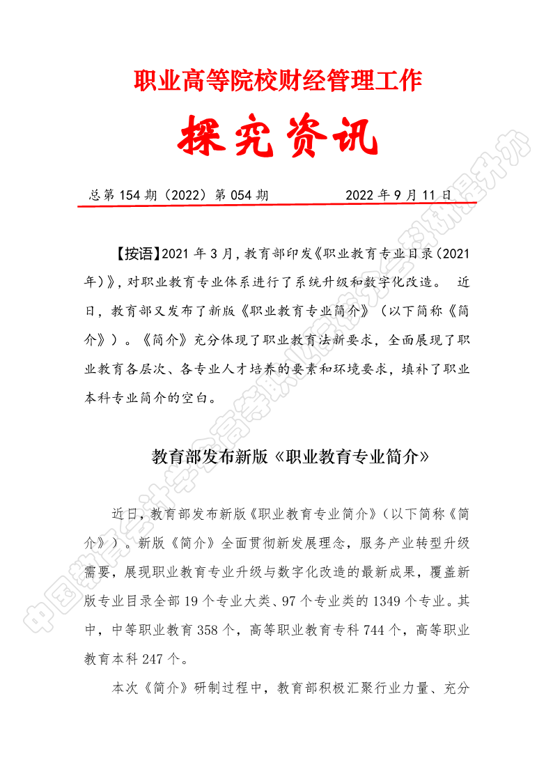 探究资讯154:教育部发布新版《职业教育专业简介》
