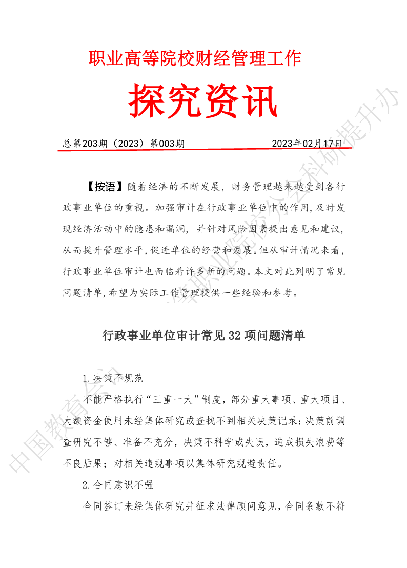 探究资讯203:行政事业单位审计常见32项问题清单