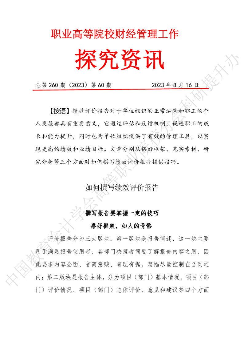 探究资讯260:如何撰写绩效评价报告(2)