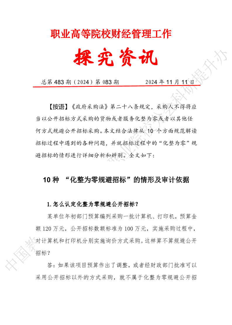 探究资讯483:10种“化整为零规避招标”的情形及审计依据