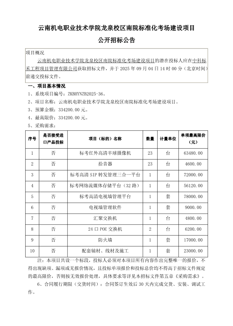 米兰平台客服龙泉校区南院标准化考场建设项目 公开招标公告