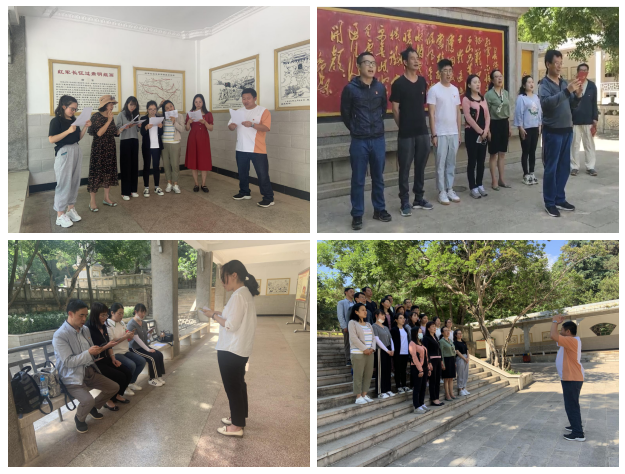 接着,由学院党总支书记李红同志领誓,全体党员佩戴党徽,举起右手、紧握拳头,重温入党誓词,铿锵有力的誓词提醒着每一名党员,恪守信念,勿忘使命,践行职责。并在红军纪念塔下为5月入党的党员同志集体过政治生日,发放生日贺卡,3位同志分别发表了感言,并集体合唱《没有共产党就没有新中国》《我的中国心》,表达了爱党、爱国的爱国主义情感。李红书记作了总结讲话,提出长征精神是中华民族百折不挠、自强不息民族精神的体现,通过回顾长征史、学习长征精神,我们更加深刻的感知长征是无数生命铸就的历史,我们要接过先辈的旗帜,永远记住这种信念不移、勇往直前、百折不挠、坚持不懈的精神,走好新时代的长征之路。机械工程学院的建设成果也是一代一代机械人艰苦奋斗的结果,我们要传承革命者的意志、立足岗位、服务师生、弘扬奋斗精神,走好机械工程学院建设和发展的“长征”之路。