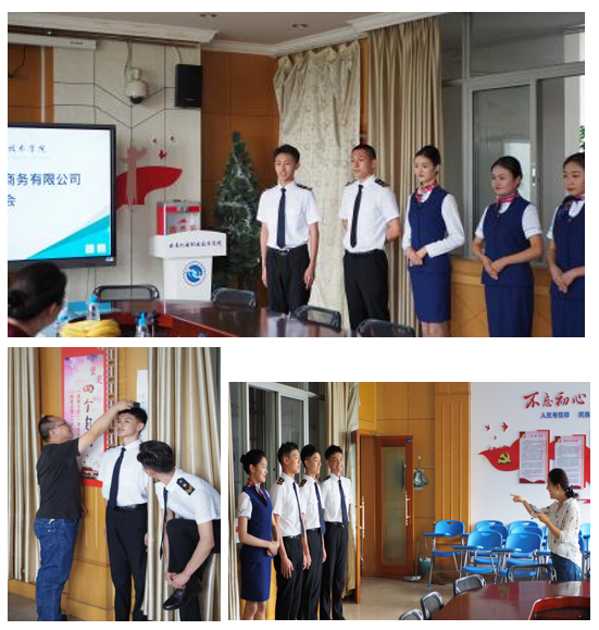 此次面试为校企合作的深度合作成果,在面试前同学们就早早的来到面试现场等待,身着职业装,面带温文尔雅的笑容。相互指点着妆容,相互修整着发型。排成整齐的队伍,微笑着走进面试厅。去手投足间都是标准“民航人”的模样。