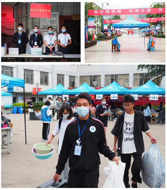 金秋八月、丹桂飘香,经济与管理学院又迎来了一批莘莘学子,一股新鲜的血液又将注入经济与管理学院的大家庭。提着行李、推着箱子、一张张青春的面容,充满了对大学生活的好奇和向往,因为疫情原因,今年新生报道时家长须在学校大门口止步,学校安排了众多志愿者帮助新生同学拿行李、答疑解惑、指引方向,新生入校时需要出示健康码、核酸检测报告,接受体温检测、行李消毒后方可进入,随后由志愿者同学带领新生同学到学院接待点办理报到手续。