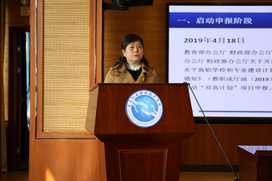 学院双高建设工作领导小组办公室主任、学院副院长邹丽以“聚力‘双高’促发展 提质培优创新高”为题作总结讲话,从启动申报阶段、批复公示阶段、完善备案阶段、全面建设阶段、思考展望阶段对学院“双高”建设项目实施作了全面回顾,并对下一步工作作了部署。她指出,要理清思路,有序推进“双高”项目建设工作;提质培优,促进学院核心竞争力形成;抢抓机遇,不断打造标志项目成果和荣誉。