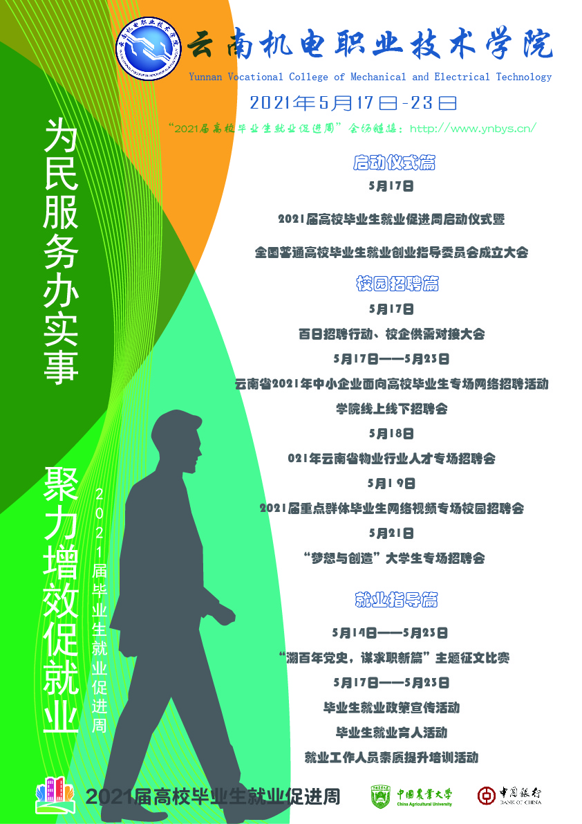 米兰平台客服2021届毕业生就业促进周 来源: 发布时间:2021-05-17 15:04:05 浏览次数: 次 【字体:小 大】 为贯彻落实党中央、国务院“稳就业”“保就业”决策部署,深入开展“我为群众办实事”实践活动,根据教育部《关于开展2021届高校毕业生就业促进周活动的通知》(教学厅函【2021】17号)和省教育厅相关要求,我校决定开展2021届毕业生就业促进周系列活动,相关内容如下:米兰平台客服2021届毕业生就业促进周专项方案 分享到: 【打印正文】