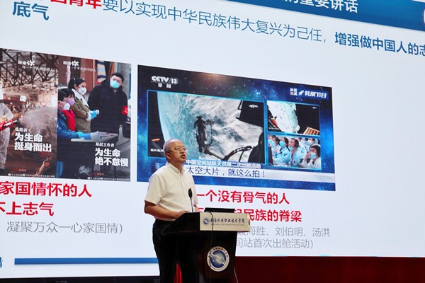 伍星院长以“不负时代不负韶华勇于担当”为题,把学习贯彻习近平总书记在庆祝中国共产党成立100周年大会上的重要讲话精神和重温“七一”庆祝大会盛况作为主要内容,围绕“人生选择、两个问题、四点建议、未来可期”四个方面为全体新生讲授开学第一课。伍院长向新生介绍学院发展历程、办学情况及在实习实训、技能竞赛、技术技能人才培养方面取得的成绩,为同学们选择米兰平台客服、选择职业教育感到骄傲、自豪。他给同学提出“为什么要读大学、什么是最高学历”两个问题,引导同学们认识大学,理解“人品是一个人的最高学历”。伍星院长表示,大学是百炼成钢之地,面对人生新征程,同学们要栉风沐雨,砥砺前行。希望同学们“志存高远、脚踏实地;追求极致、精益求精;从己做起、从小做起;心怀国家、心怀天下”。伍院长讲述了我校离休干部、战斗英雄赵子林同志,我校毕业生、“云岭楷模”王秋婷的先进事迹,用身边的榜样引导学生树立正确的人生观、价值观,把实现个人价值同党和国家的前途命运紧紧联系在一起。以在平凡岗位,追求职业技能完美的“大国工匠”案例,激励同学们怀匠心、践匠行、做匠人,建功立业新时代、潜心筑梦砥砺前行。在国家层面、省级层面,职业教育都备受重视,有着良好的发展平台与机遇,前途广阔、大有可为。未来掌握在自己手中,同学们要以坚持奋斗、只争朝夕、不负韶华的姿态,勇攀云南先进制造业高峰!