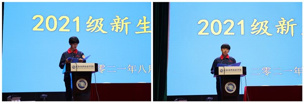 新生代表杨天赋同学以“谨记习近平总书记的嘱托,青春逢盛世奋斗正当时”为内容进行发言,大三同学赵宁瑞向新生分享了大学学习生活体会。教师代表朵丛分享个人的成长、成才、成师经历,鼓励学生磨练技能、弘扬传承工匠精神。