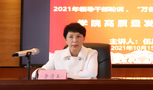 2021年10月15日,我校举办【党史学习教育】暨2021年领导干部轮训、“万名党员进党校”培训。校领导、中层干部、全体党员共计300余人参加,会议由党委书记李清玉主持。