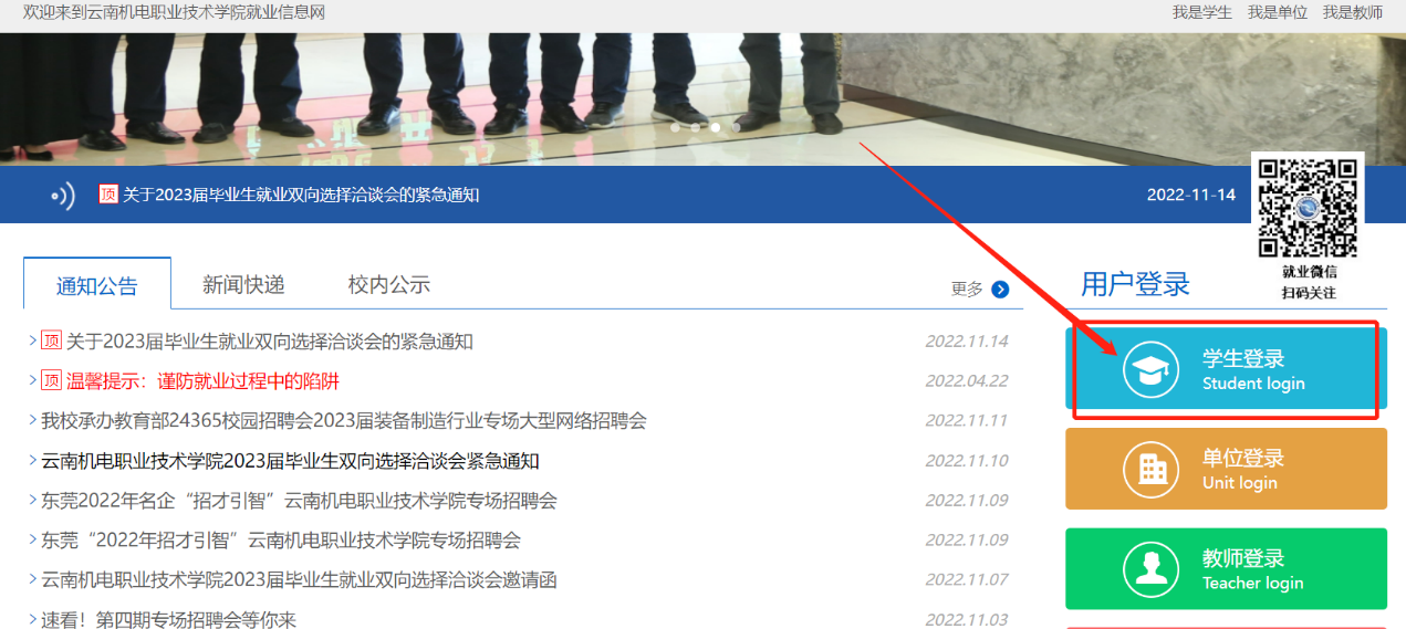 第一步:进入我校就创业信息网(http://ynmec.ynbys.cn/)
