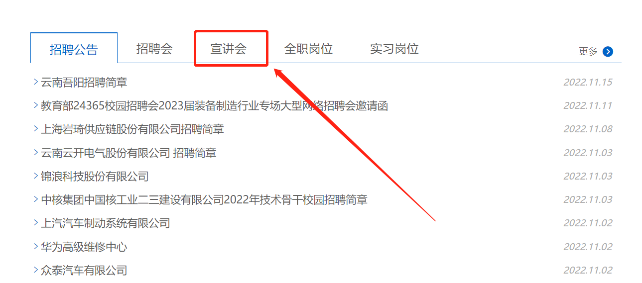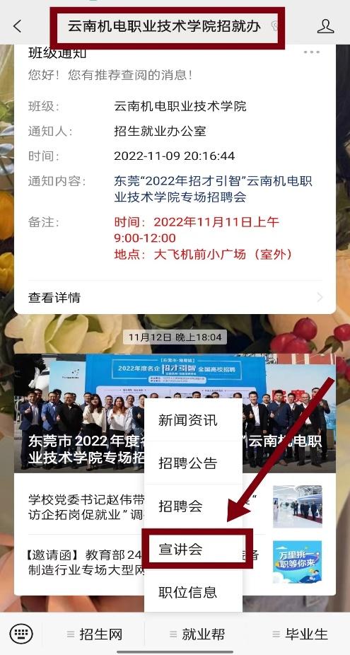 第二步:点击导航栏“就业帮”并点击“宣讲会”
