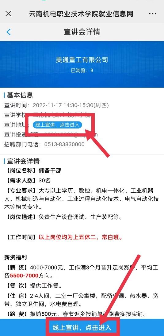 第四步:点击线上宣讲,点击进入,如下图: