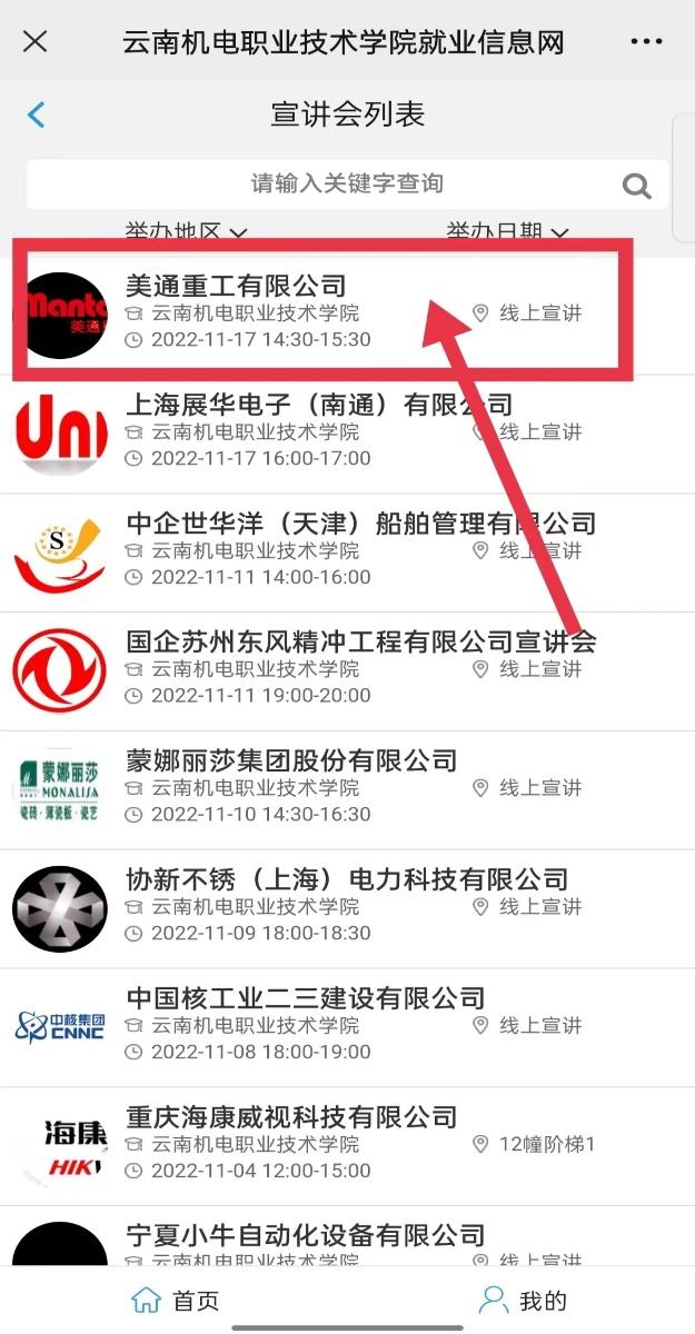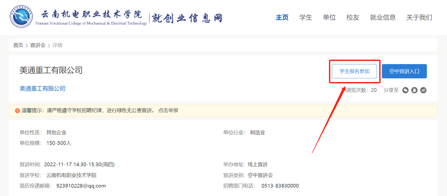 第三步:点击感兴趣的空中宣讲会(招聘会),如下图,打开宣讲会详情页面